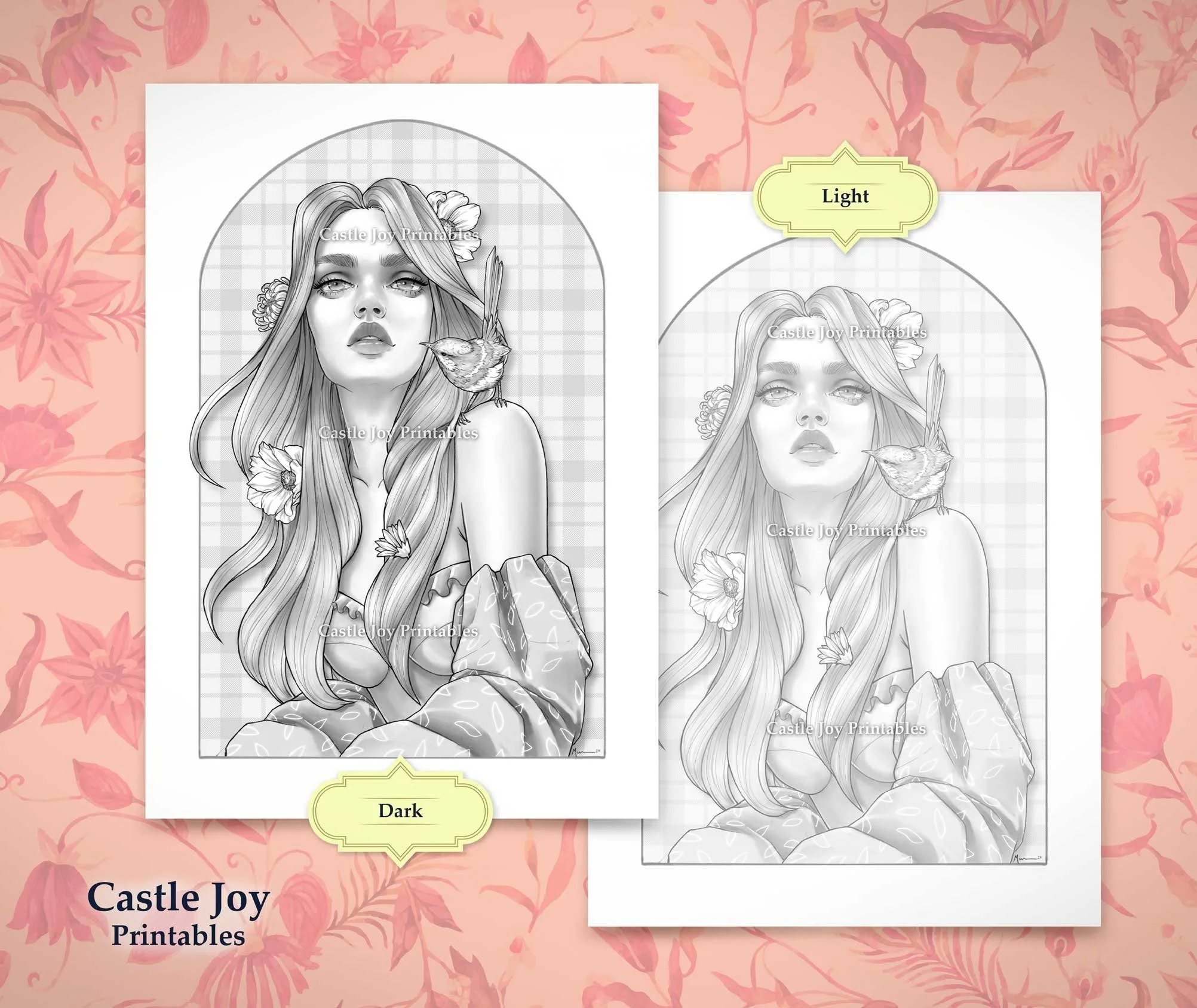 These pages are three variations in tone in PDF & JPEG files, one is dark gray, another is light gray and sepia. Your files will be available for download through this Etsy shop immediately after purchase. Feel free to print as many copies as you wish, to try different coloring styles.